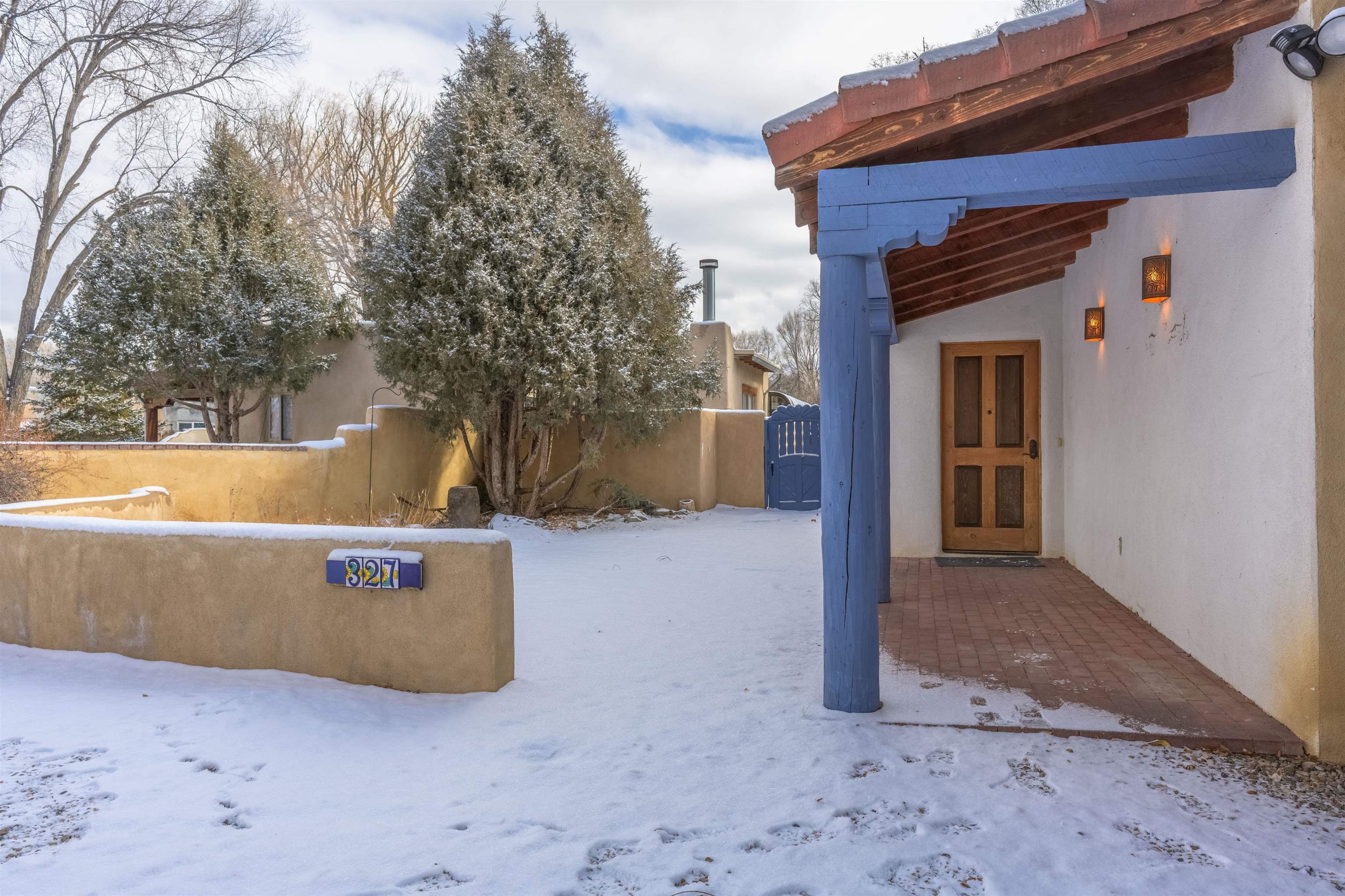 Nestled in the heart of Taos, this charming 2-bedroom, 2-bathroom with an attached sunroom home exudes Southwest character and offers a welcoming blend of indoor and outdoor living spaces. Situated on a manageable .18-acre lot, the property features a one-car carport and a fully fenced yard with mature trees, creating a private and serene setting. Step inside to find traditional details such as Saltillo and slate tile floors, exposed log beams, and a wood-burning stove that adds warmth and ambiance to the light-filled living room. A set of double glass doors leads to a spacious sunroom with red brick floors, perfect for relaxing or entertaining year-round. The open-concept kitchen and living area provide a functional and inviting space. The kitchen boasts a gas range with a griddle, a stainless steel French-door refrigerator, and a striking wall of white subway tile accented by open shelving. A breakfast bar and ample cabinetry enhance the kitchen’s appeal, while a convenient washer and dryer are tucked just off this space. The primary bedroom is a peaceful retreat with double mirrored closets that reflect natural light, an ensuite bathroom, and double glass doors leading to an enclosed yard. The high stucco walls ensure privacy, while the outdoor space is enhanced by blue accents on the decorative wood gate and beams at the covered entrance. With a touch of Taos charm throughout, this home offers an opportunity to enjoy a unique property in a desirable location, blending timeless Southwest details with everyday​​‌​​​​‌​​‌‌​​‌​​​‌‌​​‌​​​‌‌​‌​‌​​‌‌​‌‌‌ functionality. Listed by of Berkshire Hathaway Home Services Taos Real Estate 2 - .