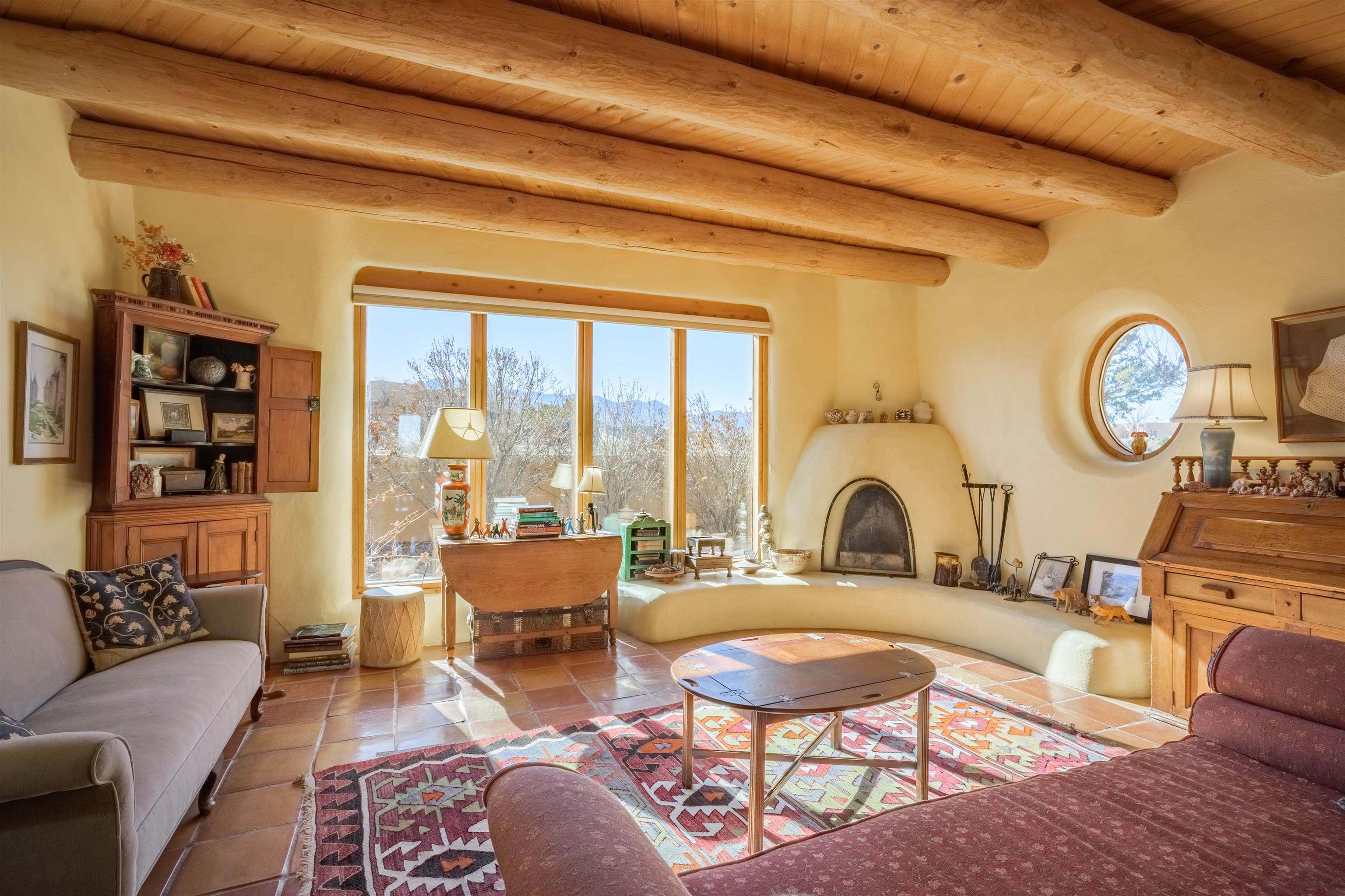 Charming Adobe Pumice Home with Expansive Mountain Views Discover this delightful 2-bedroom, 2-bath adobe pumice home, offering a perfect blend of comfort and natural beauty. Featuring traditional vigas and a cozy wood-burning fireplace in the living room, this home is bathed in natural sunlight, creating a warm and inviting atmosphere. The primary bedroom includes its own wood-burning stove, providing an extra touch of comfort. Adjacent to the primary bedroom, there's a spacious office/studio area, perfect for creative work or as a quiet retreat. Set on 1.25 acres with mature trees, the property features a covered portal where you can relax and enjoy the stunning mountain views. Outdoor enthusiasts will appreciate the nearby golf course and hiking trails, providing excellent recreational opportunities. With easy access to shopping, dining, and skiing, this home is ideally situated for those seeking both tranquility and convenience. Don’t miss out on this charming property—schedule a showing today! Vista Linda HOA Websitehttps://sites.google.com/site/vistalindaneighborhood Annual Dues $250. Listed by of Berkshire Hathaway Home Services Taos Real Estate 2 - .